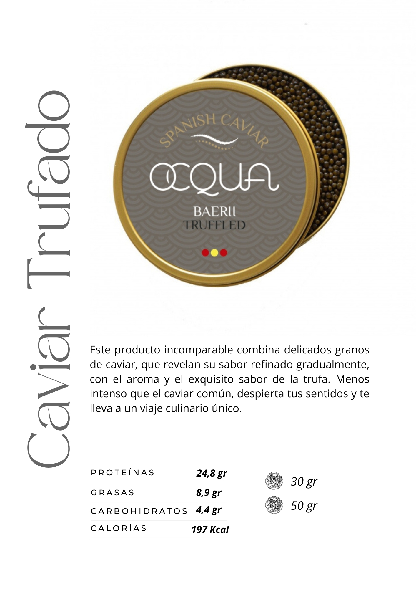Transforma tu experiencia gastronómica con el exclusivo caviar negro del esturión siberiano, enriquecido con la esencia de la auténtica trufa negra.